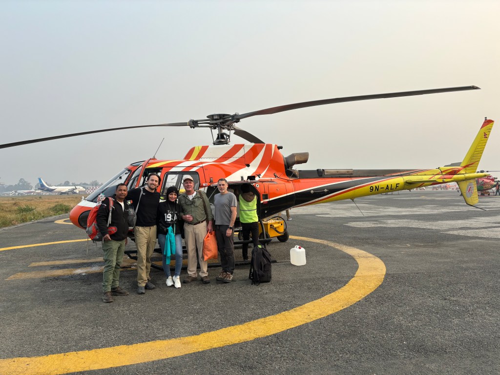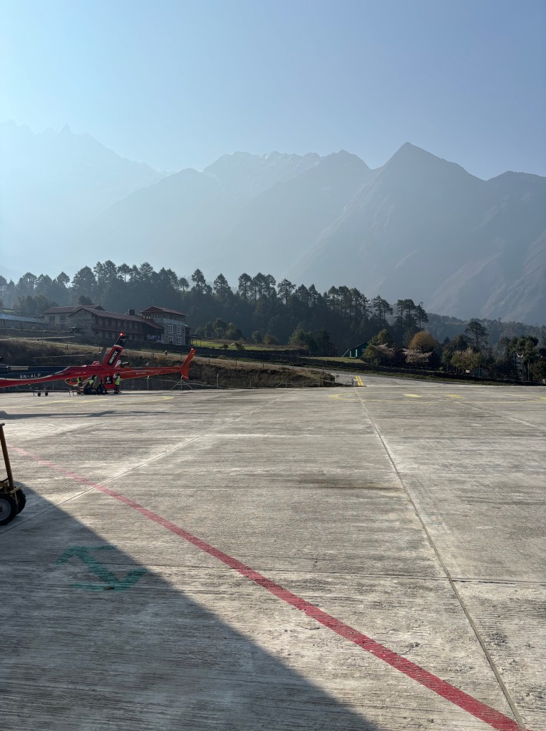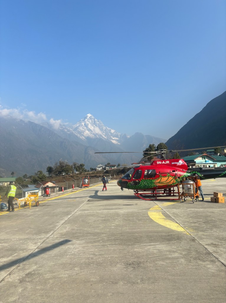 We met in the lobby at 5:30 for the airport. Navigating Kathmandu at that time is 1000% easier than when the city is up and at ‘em. We got to the airport, went through the necessary security steps, and were taken to our helicopter.