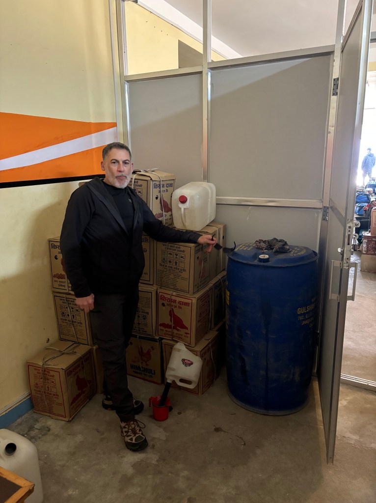 Due to the thin air weight became more important. So, we had to spilt up with only two, people and the pilot going at once. Jeff and I took the second shift meaning we stayed at the Lulka airport while Shadi and Nicolas went ahead. The airport “terminal” is no larger than our first house, 1200 sq. ft., and is packed with trekkers waiting to be taken to base camp to begin their ascent. We were cordoned off in a small room so as not to contaminate the trekkers with our westernly comfortable physiques and lung capacities. In that room was a blue 50 gal. barrel of fuel and assorted other junk. We sat and prepared when a man came in and asked if he could smoke !! When we made him aware of the fuel issue he replied that it was no issue and at some point he proved that to himself by dropping a cigarette into a barrel with no ill effect. Whatever.