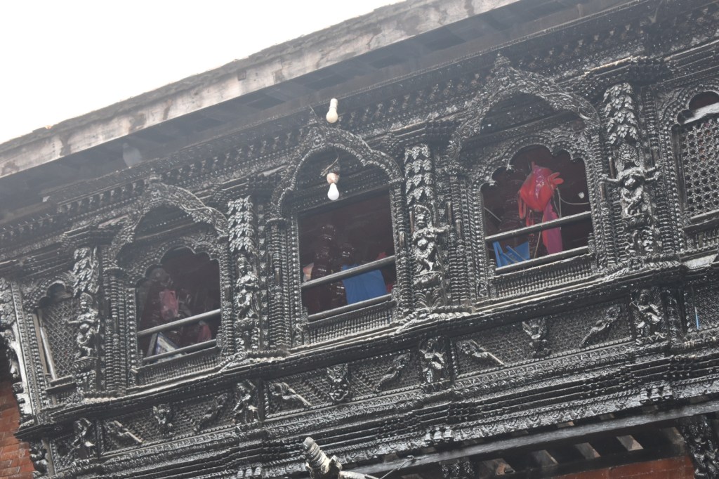 Outside the palace Biren showed where he was standing when the earthquake of 2015 hit, in which 8-10,000 people died. Biren had a tour group,with him, two American women. They were standing next to the palace and saw part of it and a temple next to it crash down. In the picture, all of the darker building collapsedas did the right portion of the palace next to it. With all the mayhem, dust, screaming, etc. the two in the group made him continue the tour because they “had payed for it”.