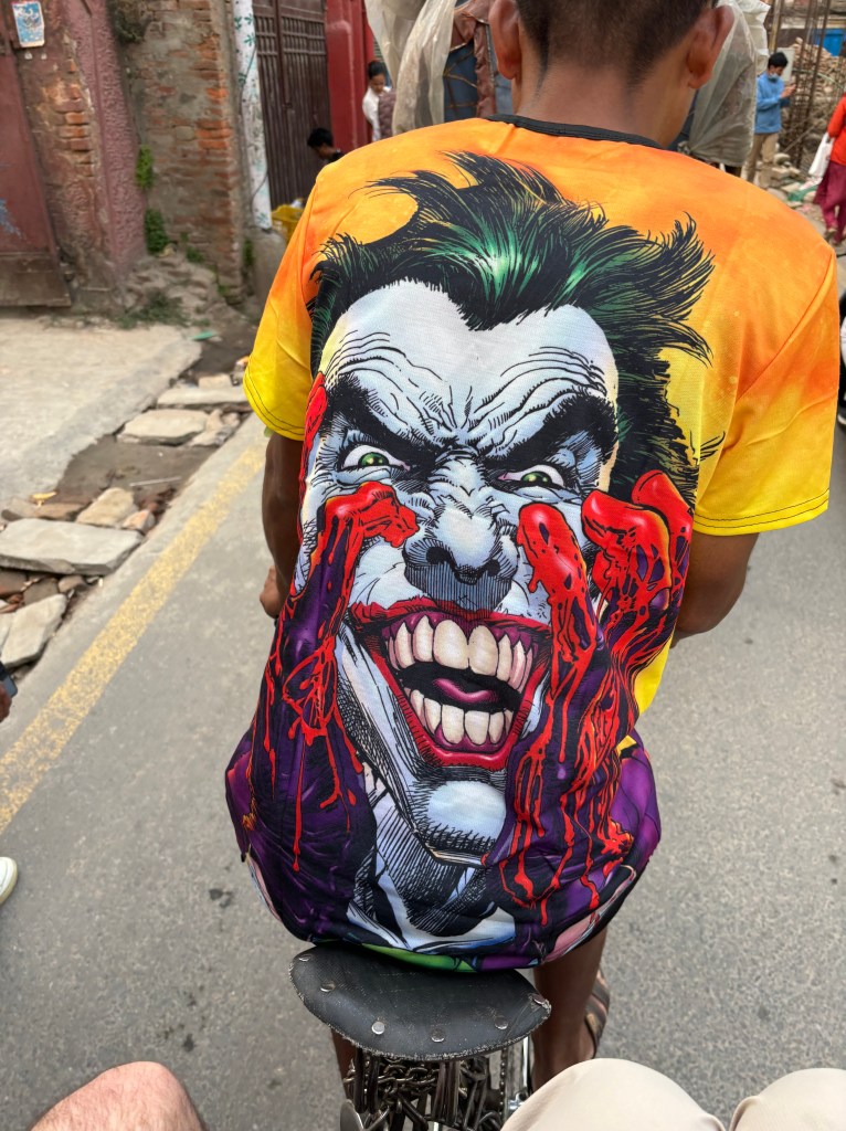 As if the ride through narrow roads, people, and scooters wasn’t enough this is the shirt our driver had on, and which we had to watch the whole way.