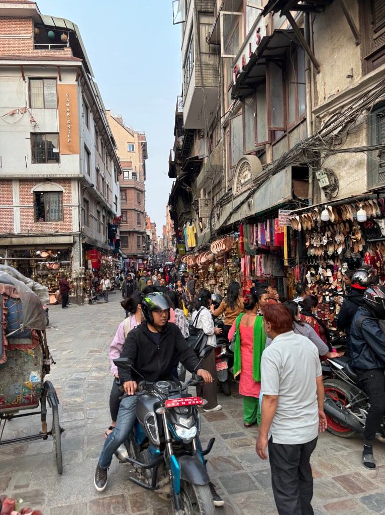 Following this stop, Biren arranged for us to ride home on rickshaws back to our hotel. As an added treated he directed them to take the route that went down the busiest street in Kathmandu. This was quite the ride as throughout Kathmandu there are NO traffic’s rules for cars, scooters, rickshaws or anything.