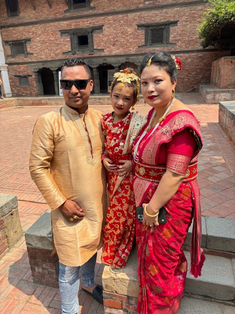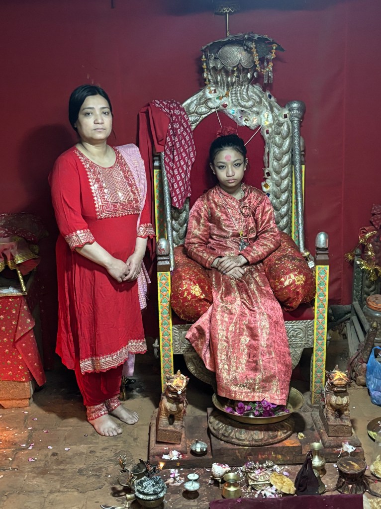 First off – another Kumari to visit. This is a lower level Kumari to the girl we saw before. She got to live in her temple with her parents and brother. The basic rules still applied as in can’t touch the ground, can’t leave the temple, etc. They live in four rooms, those being the only ones she exist in.