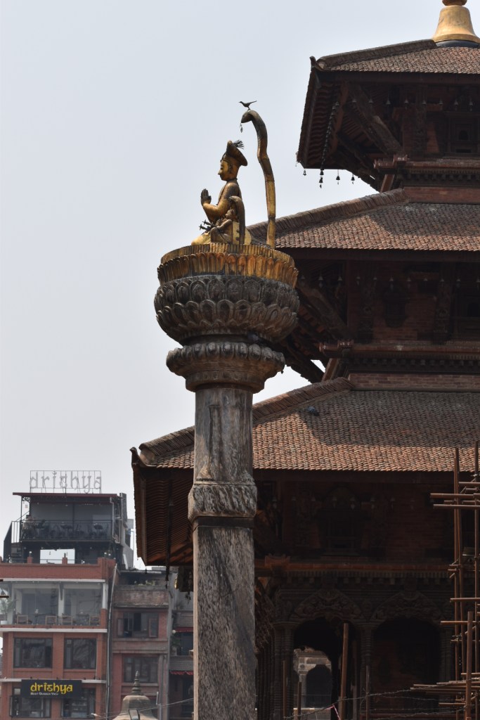 In keeping with this being a former royal palace, the statuary reflected that. This statue shows the former king, he’s been gone a while now, being protected by a snake. The bird on the snake’s head, it is told, will be there until the king dies. I want to come back and check that out.