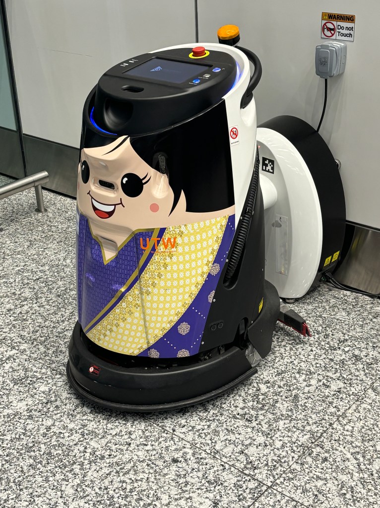 The airport itself was very large and exceptionally clean, achieved by the use of cute floor sweeper/waxers. Of course, they had to look good as well.