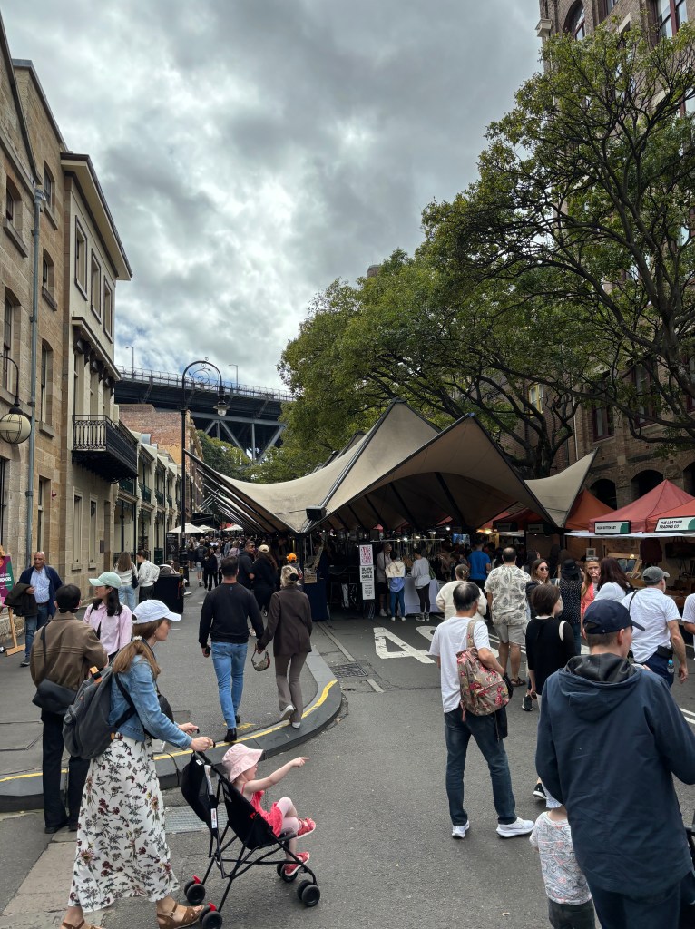 Up and refreshed we left the hotel to walk the area and see the sights. Sydney, a city of 5.2 million people, but is clean, quiet and very walkable. First thing we hit was a street market full of art, food, clothing.